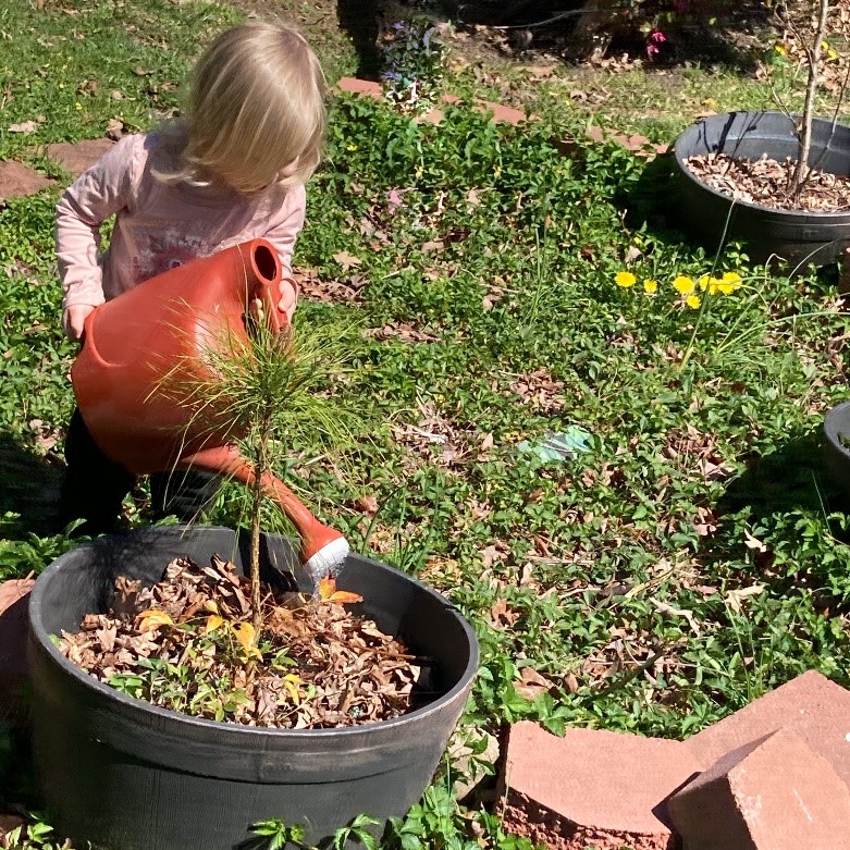 SPRING IS HERE! As of today, April 7, we have almost 160 hours outside since we launched the 1000 Hours Outside Challenge on January 23. These warmer days over the past few weeks have really given us all new life! I have spent a few afternoons working from home outside at a makeshift desk in the backyard. My husband and kids have also been able to transition their daily activities more easily to being outside. It is so much easier to get kids outside when you don’t require two jackets, hats, gloves, extra socks, basically, everything shy of a full snowsuit. When you only require a pair of shoes and clothes on your back, it is way easier to make time to be outside. However, I will admit that I will miss the hot chocolate bribe to get O back inside sometimes, maybe we’ll just have to start making smoothies instead!